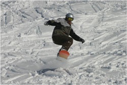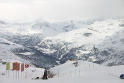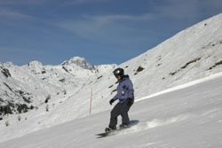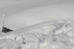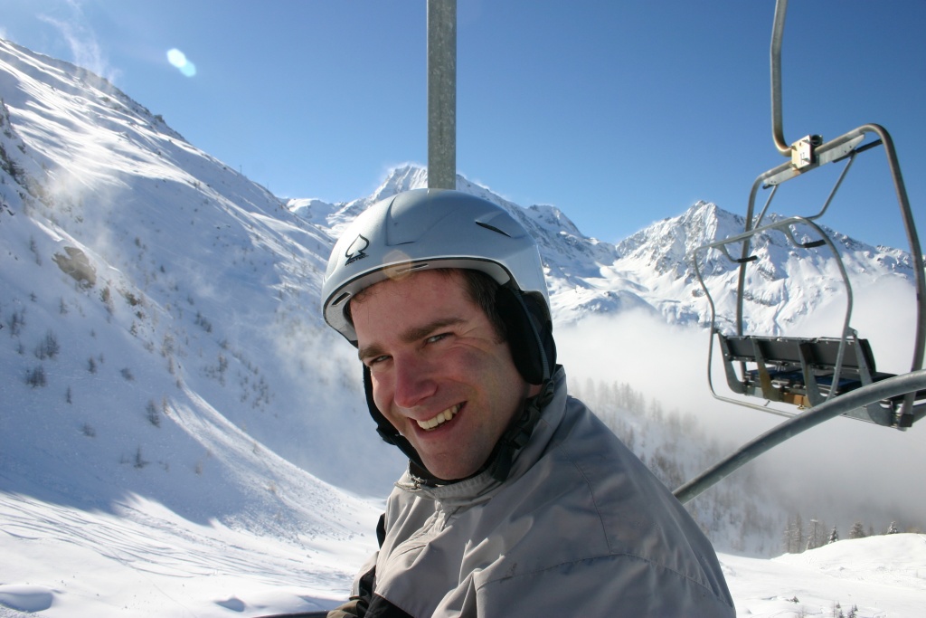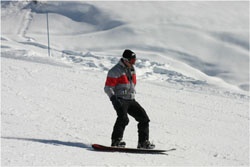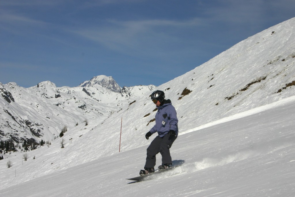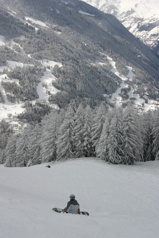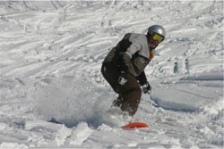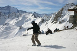 Andy getting high at Tignes (don't forget to bring a towel!) In the background is La Grande Casse (3852m) |